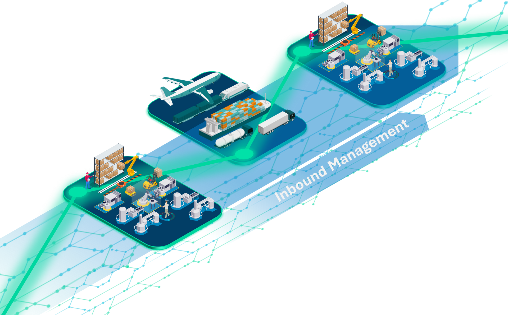 The inbound module not only improves transparency along the entire supply chain, but also increases production capacity utilization because supply is optimally guaranteed and unnecessary transport is minimized. Production planning is enriched and optimized with real-time data.