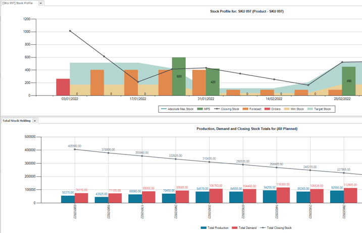 - Once an initial MPS is created, the data can be viewed as both inventory profile and capacity utilization charts. The MPS can be changed by simply clicking and dragging a point on the inventory or capacity charts, and the production of a particular item can be shifted from one planning period to another. Any changes made will be reflected in all linked graph and grid windows.