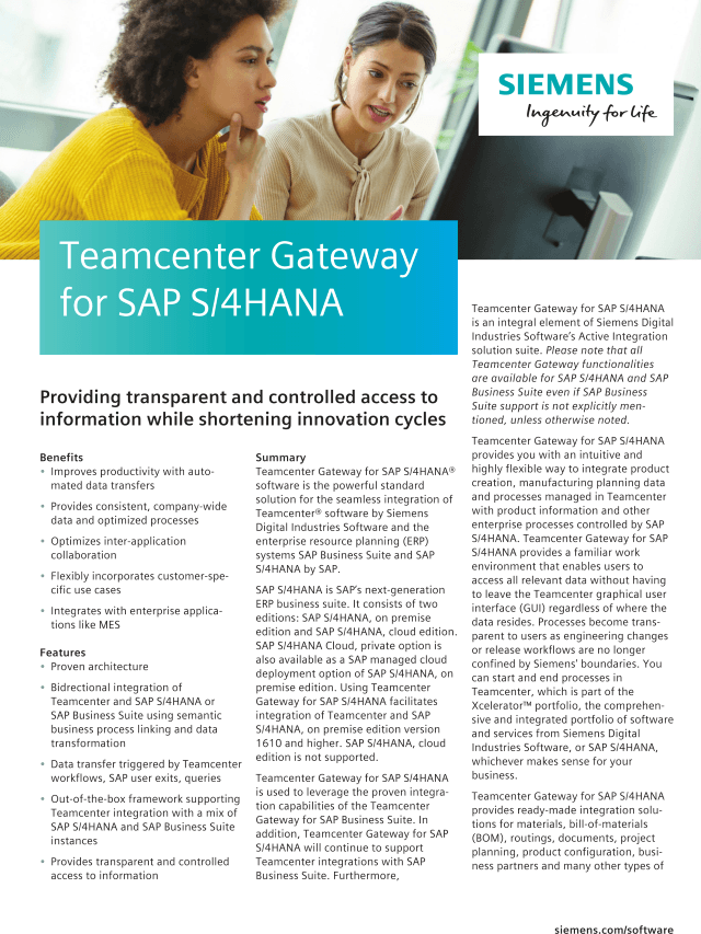 (T4S & T4S4) - Siemens Teamcenter - SAP Software