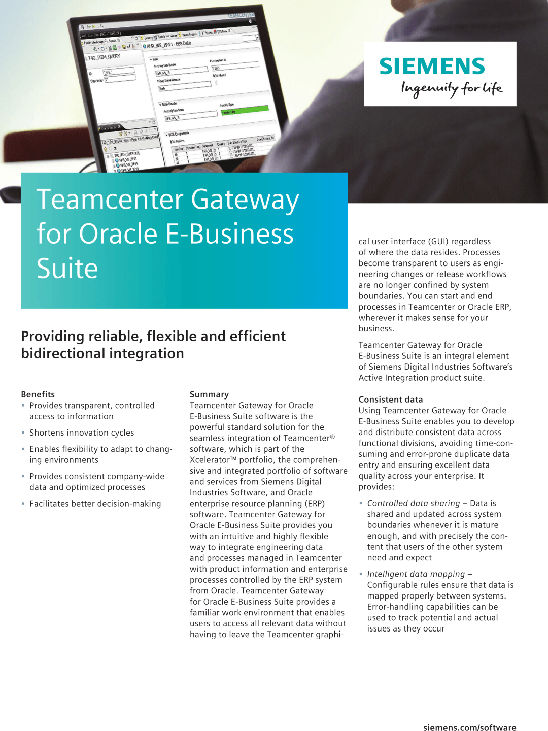 Often times, to make effective decisions, users need to collect data from a variety of enterprise applications, such as: Product Lifecycle Management (PLM), Enterprise Resource Planning (ERP), Manufacturing Execution System (MES), Customer Relationship Management (CRM) and Supply Chain Management (SCM). Active Integration from Siemens Digital Industries Software provides solutions that enable users to share data from Teamcenter and other enterprise application systems to ensure everyone has the information they need to facilitate the decision-making process.